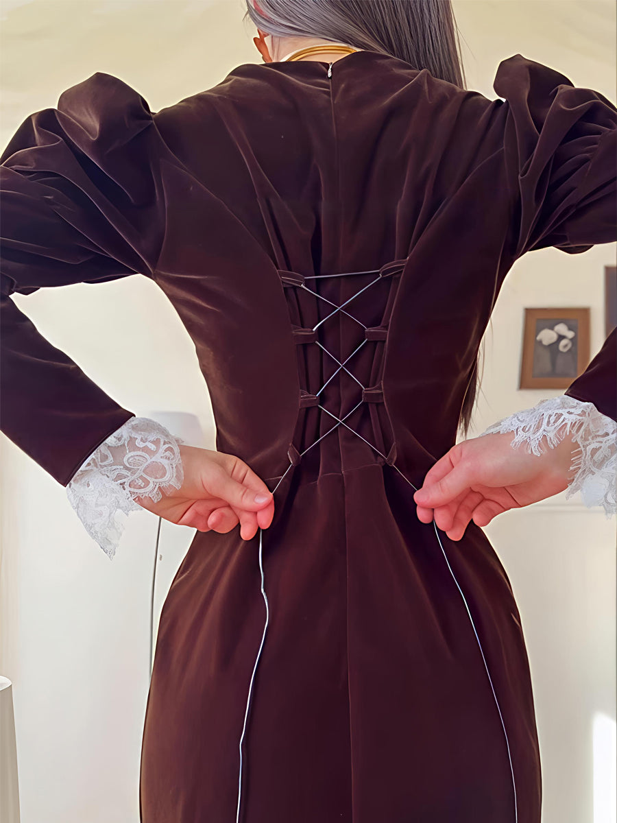 Elegant Lace Patchwork Velvet Back Strap Maxi Dress