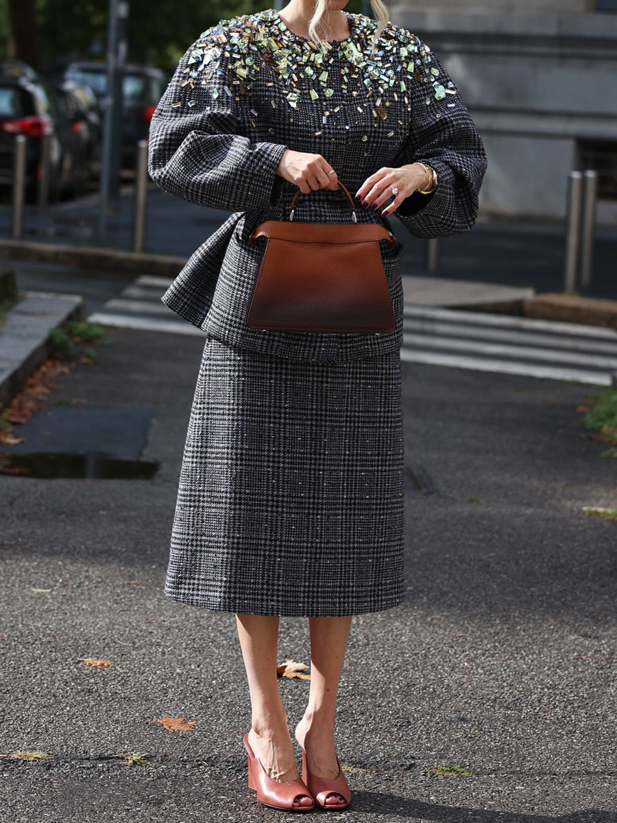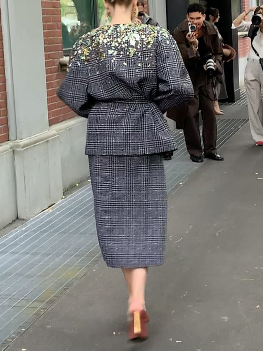Plaid Print Rhinestone Sparkle Two Pieces Dress
